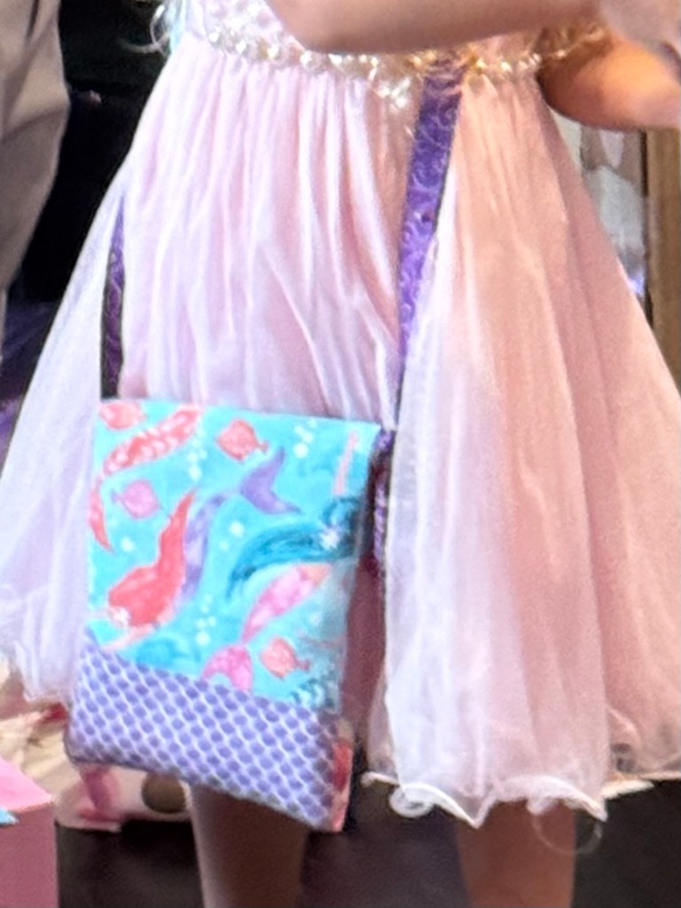 At the party, my granddaughter liked my gift so much that she promptly put it over her head/cross body- style, and wore it there for the rest of the party! (photo fuzzy due to me cropping to show the purse).